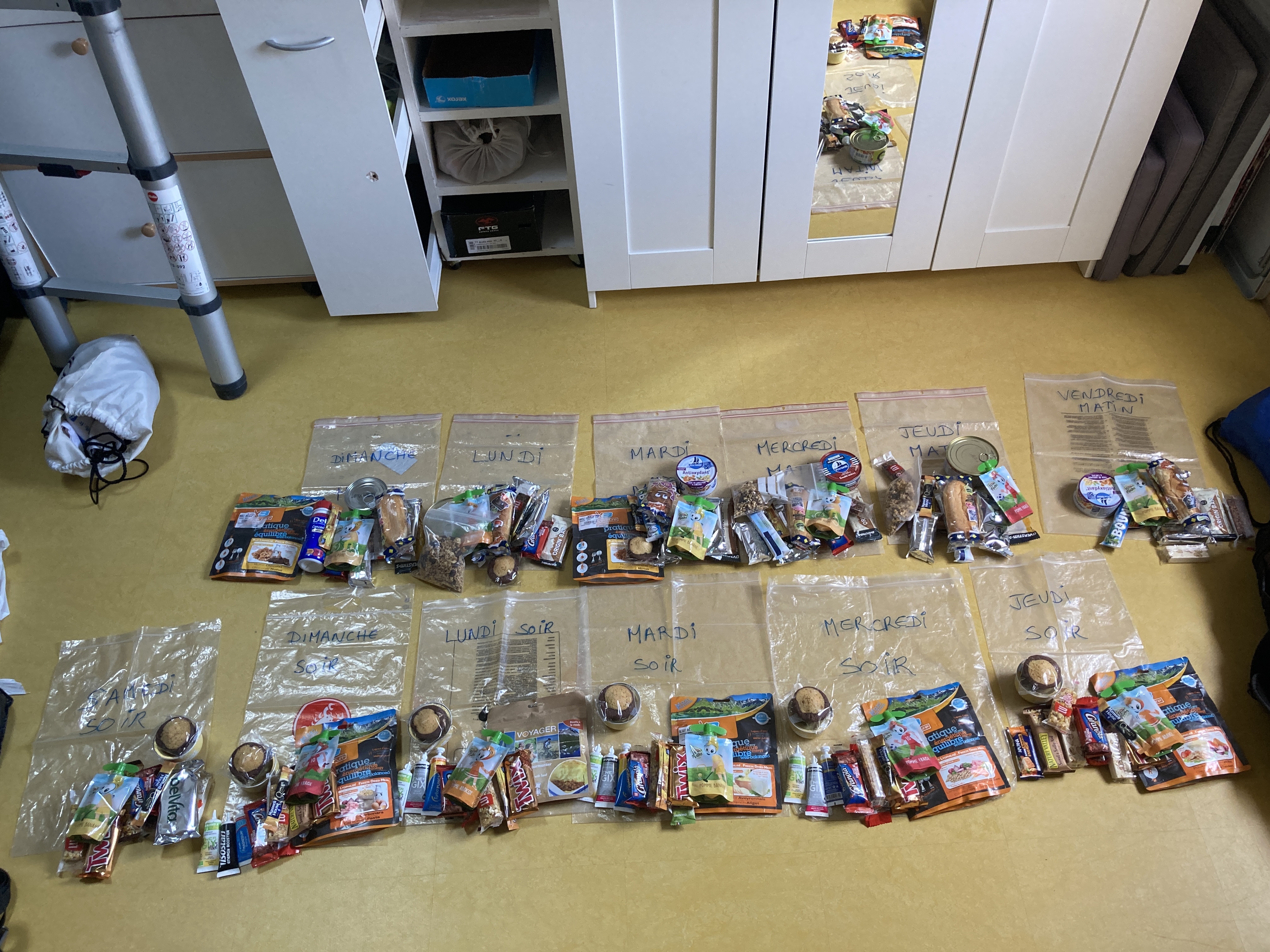 Autonomie en ravitaillement pour quelques heures (barres, bonbons, sucré, salé…) tout ce qui peut vous faire du bien au corps et au moral