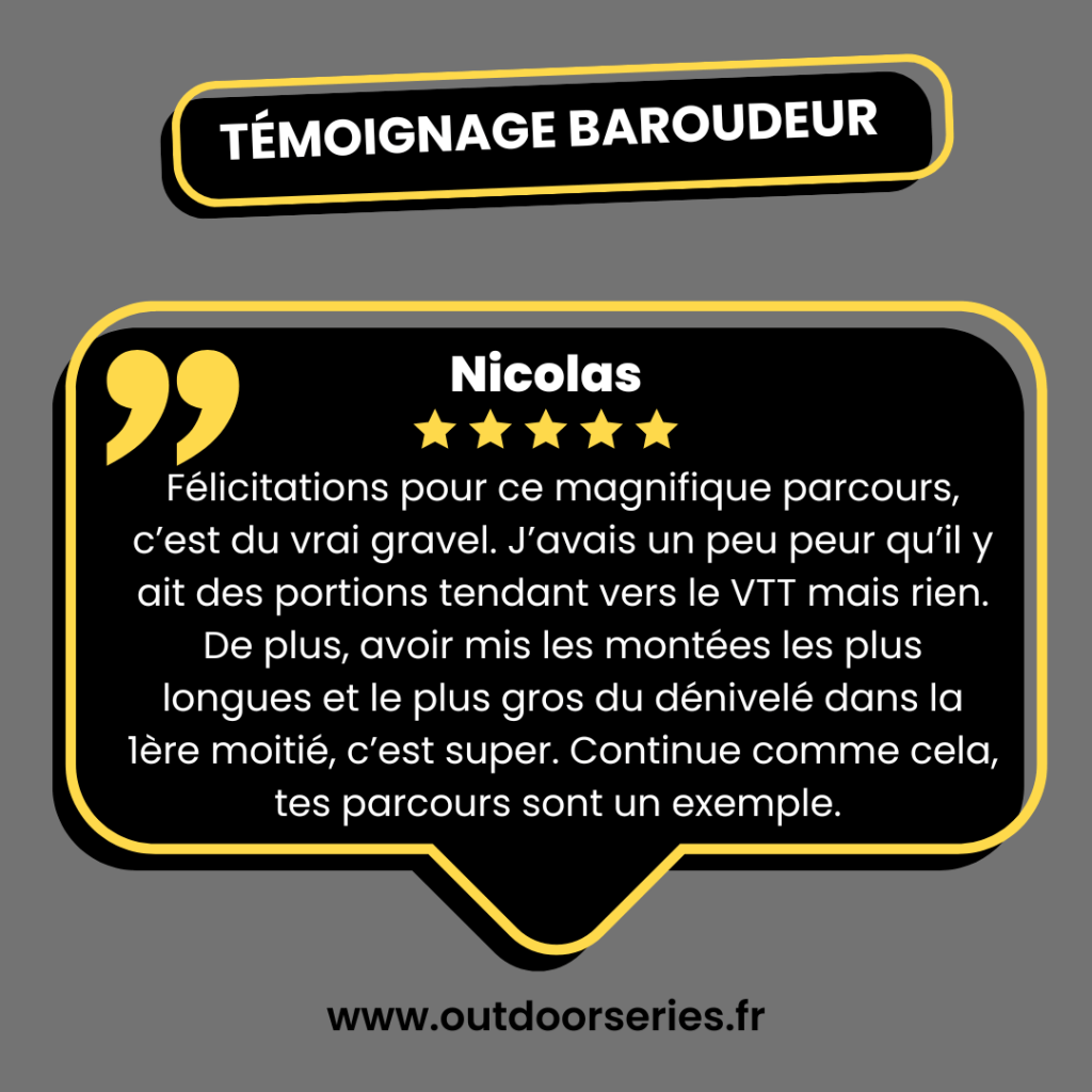 - PARCOURS GRAVEL en boucle : Pistes forestières, petites routes, single tracks vallonnés et escarpés, en fonds de vallées ou sur des plateaux, et au coeur de forêts profondes, diversité assurée !